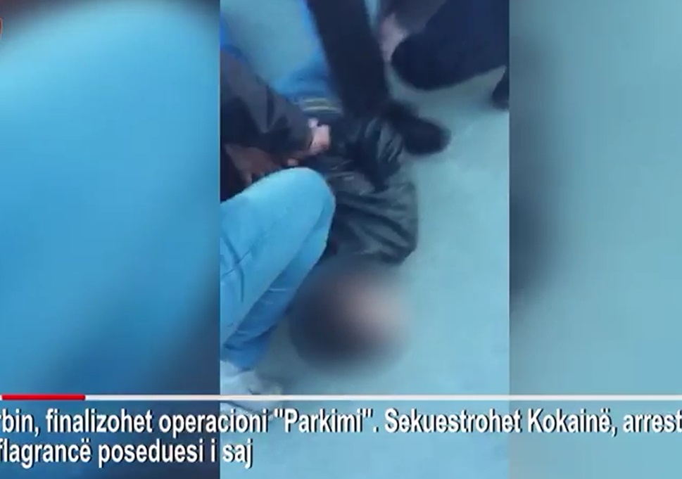 Pas kësaj, në pamje duket sesi policia ka shtrirë përtokë 22-vjeçarin Jurgen Sokoli, banues në Laç, duke i vënë prangat.