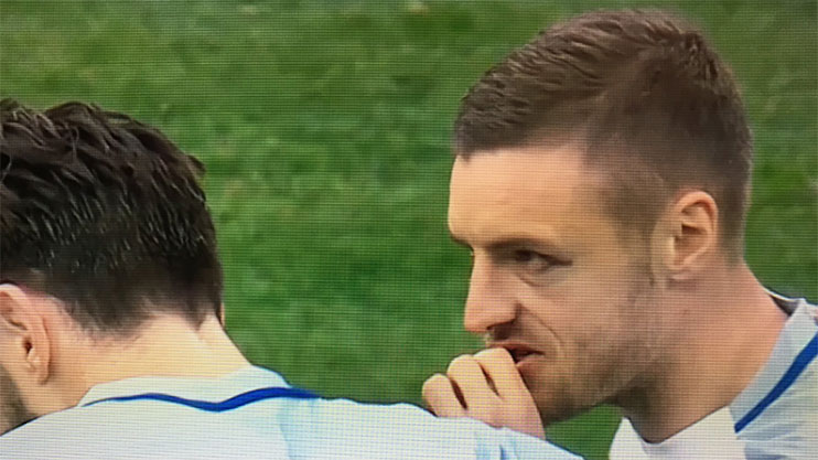 Fillimisht sulmuesi i “Tre Luanëve” reagon çuditshëm pas një rasti të humbur duke goditur fushën me kokë dhe siç duket nga pamjet është një goditje shumë e fortë, por koka e Vardy-t duket se është mësuar me të tilla goditje.