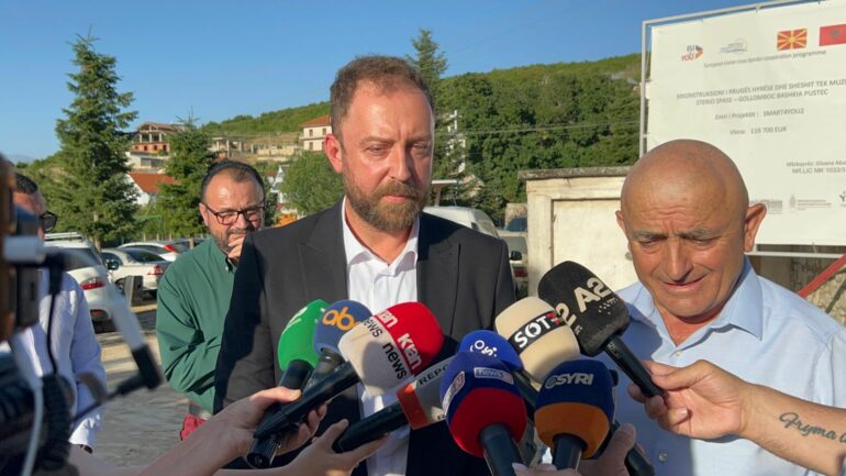 Ministri i Kulturës dhe Turizmit Zoran Lutkov i Maqedonisë së Veriut, nga Gollomboci dha një deklaratë për mediat në lidhje me rezultatet e regjistrimit të popullsisë sa i përket minoritetit maqedonas
