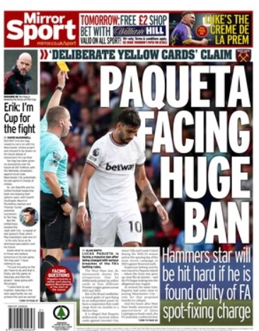 Nga një premtim i madh, një lojtar që pritej të transferohej te Man.City, Paqueta e sheh veten në bankën e të akuzuarve, me Federatën Angleze që ka hapur zyrtarisht një hetim për trukim ndeshjesh, për influencë në baste sportive. Pas nëntë muajsh hetim, Federata Angleze ka dalë me një komunikatë zyrtare ku akuzon Paqueta-n për tre kartonë të verdhë që ka marrë, qëllimisht.