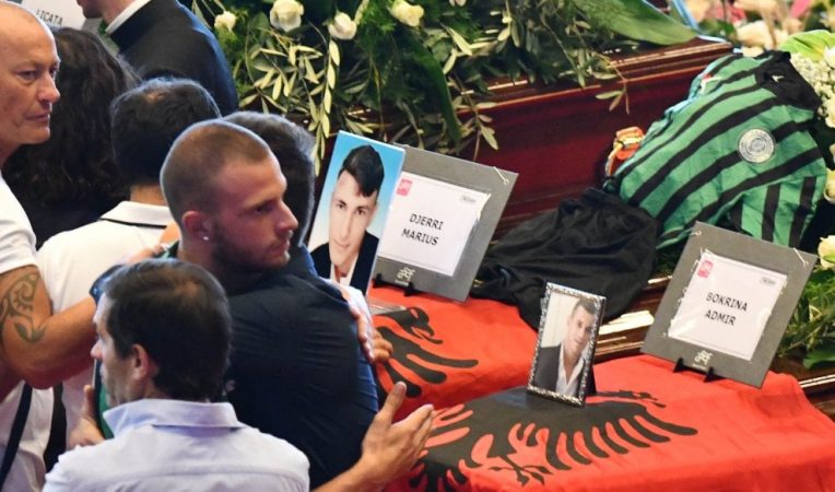 Mes 18 viktimave që iu dha sot lamtumira e fundit në funeralin shtetëror në Genova, ishin edhe trupat e dy shqiptarëve Admir Bokrina dhe Marjus Djerri. Arkëmortet e dy të rinjve shqiptarë ishin vendosur pranë njëri tjetrit të mbuluar me flamurin kombëtar, ndërsa familjarë miq e të afërm, mes lotësh i dhanë lamtumirën e fundit.