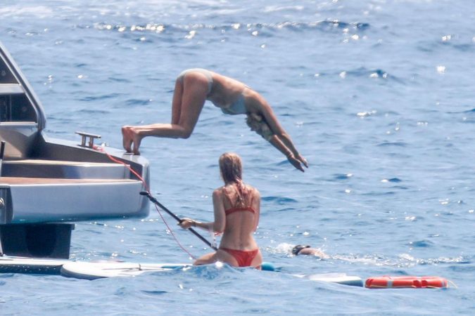 Modelja ndodhet në një jaht luksoz duke bërë banjo në diell dhe duke u zhytur ne det.