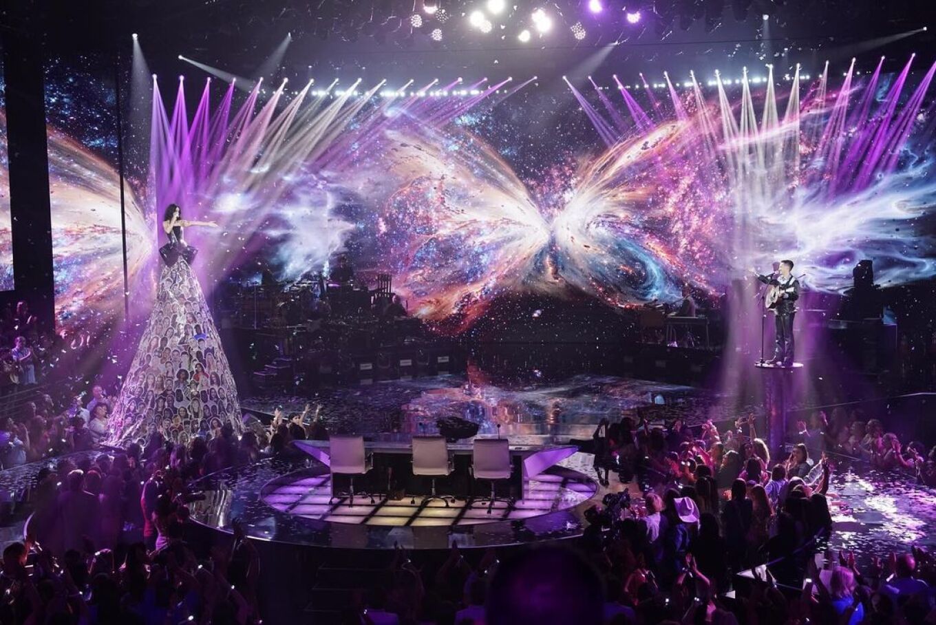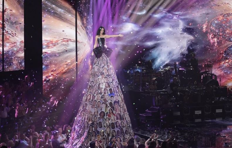 Katy Perry u shfaq në finalen e “American Idol” me një fustan në nder të konkurrentëve që kanë kaluar në show.