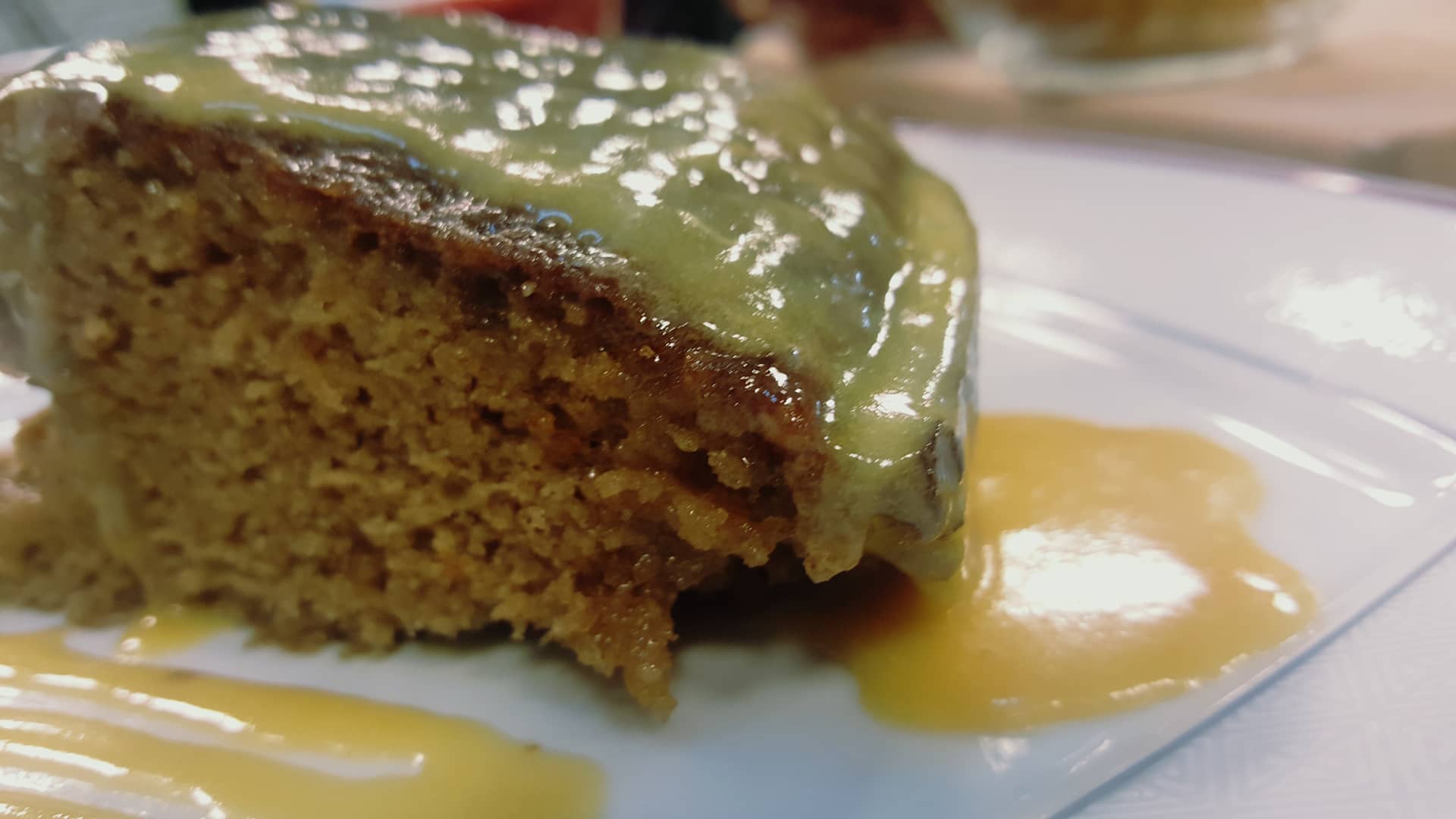 Pasi keku të jetë pjekur e lemë pak të ulet temperatura dhe e sherbetosim me sherbetin e vakur. Më pas vendosim mbi kek një shtresë nga kremi i karamelizuar, e lemë të ftohet mirë dhe më pas e servirim.