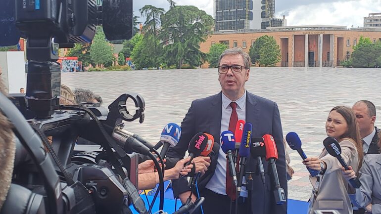 “Zgjedhjet parlamentare mund të zhvillohen brenda një viti e gjysmë nëse institucionet përkatëse ndërmarrin hapat e nevojshëm”, u tha sot Vuçiç gazetarëve përpara samitit të Komunitetit Politik Evropian në kryeqytetin e Shqipërisë, Tiranë.