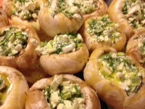 Ndërkohë largojmë nga zjarri kërpudhat me domatet dhe i trazojmë me spinaqin. Fillojmë të mbushim kërpudhat, fillimisht me djathin trazuar me gjizë dhe vezë dhe më pas me spinaqin. Në fund e mbyllim me një fetë të hollë djathë mocarela. E vendosim tavën në furrë në temperaturën 180 gradë Celsius për 25 minuta.