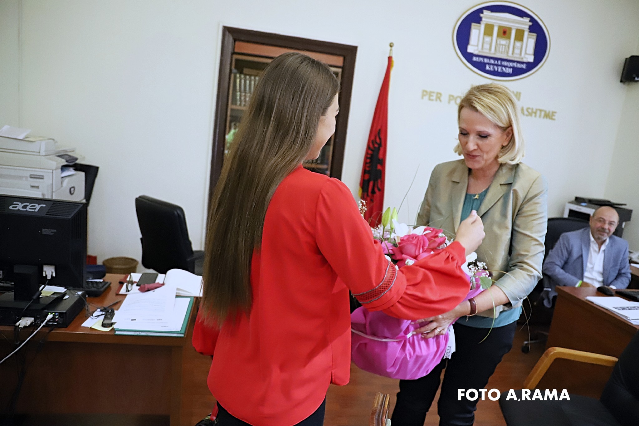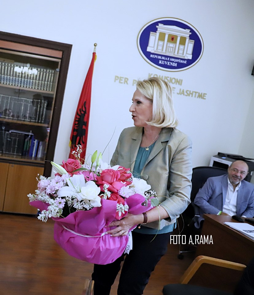 Buqeta me lule duket se është porositur nga deputetja e partisë çame të Dibrës, Reme Lala. Në fotot e realizuara në Kuvend, vihet re prania e ish-ministrit të Jashtëm, Ditmir Bushati si dhe e deputetëve si Rudina Hajdari, Ralf Gjoni, Ligoraq Karamelo, Eglantina Gjermeni dhe Andrea Marto.