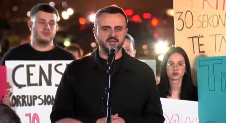 Kryetari i FRPD, Besart Xhaferri tha gjatë tubimit të organizuar nga opozita se të rinjtë po protestojnë kundër censurës. “Me 12 maj do mbyllim serialin me pullë të kuqe sy m’sy”.