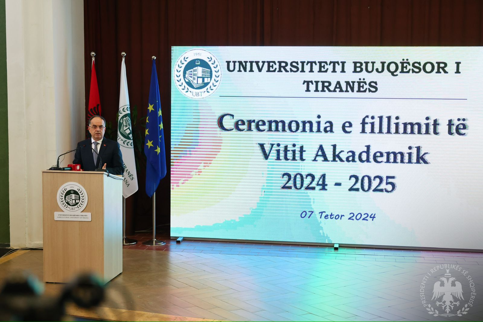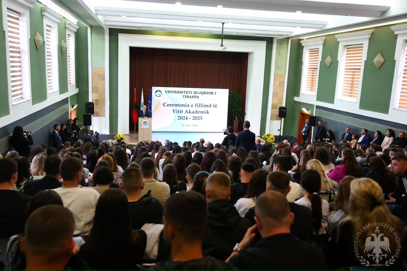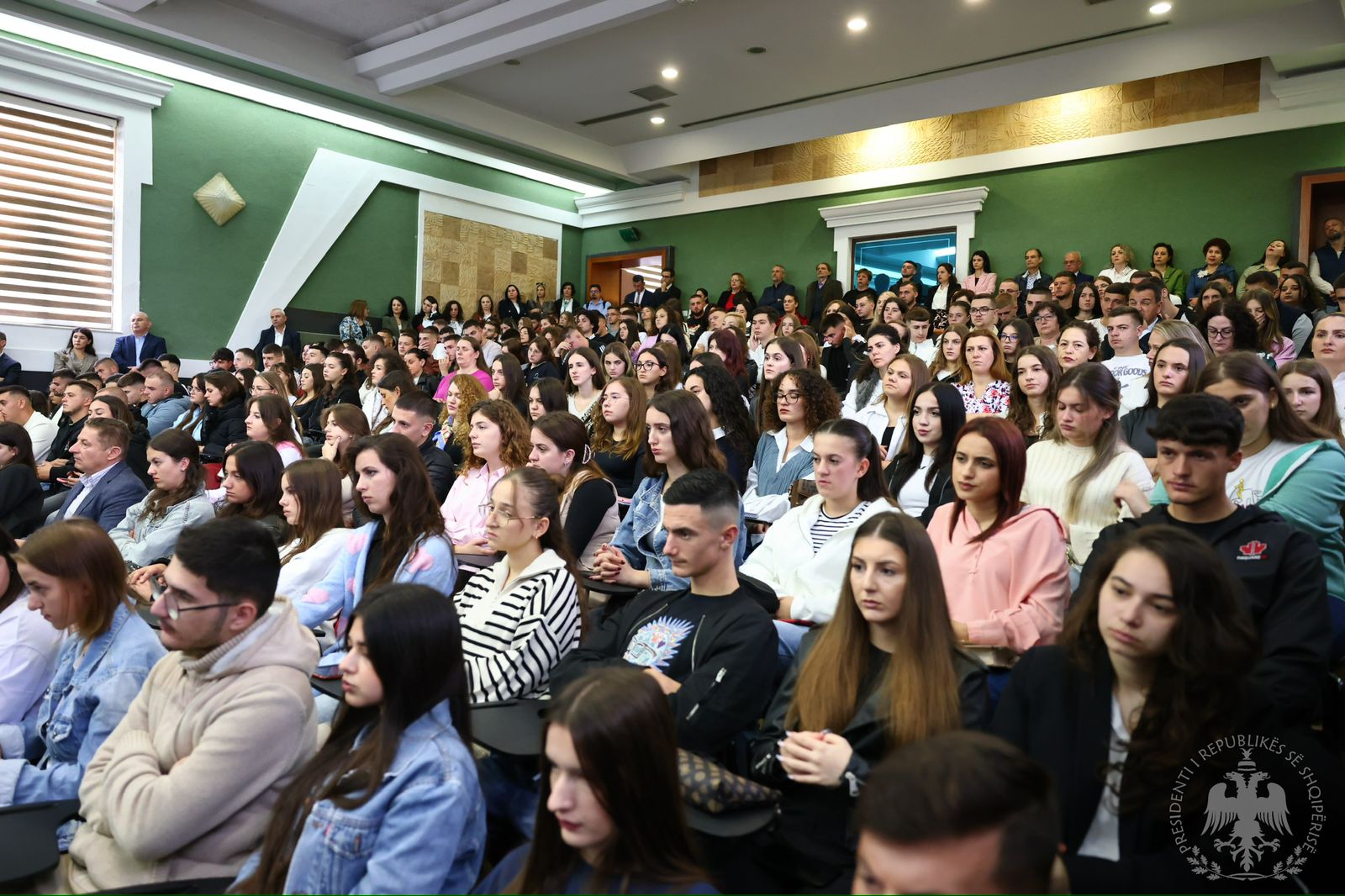 Presidenti i Republikës përgëzoi të rinjtë që kanë zgjedhur të qëndrojnë e të studiojnë në Shqipëri, ndërsa vlerësoi si detyrim të autoriteteve shtetërore plotësimin e kushteve të jetës universitare, si dhe garantimin e tregut të punës.