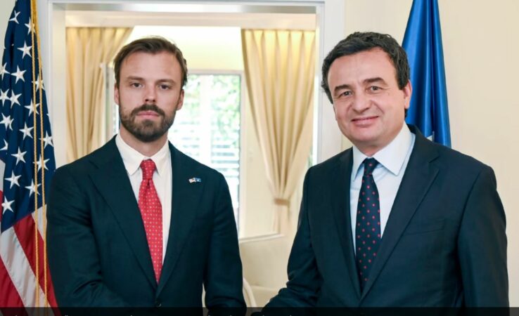 Kryeministri në detyrë i Kosovës, Albin Kurti është takuar në mbrëmjen e së shtunës me zyrtarin e lartë të Departamentit amerikan të Shtetit, Brendan Hanrahan në Prishtinë, me të cilin ka diskutuar për marrëdhëniet biletarale mes Kosovës dhe Shteteve të Bashkuara dhe rëndësinë e thellimit të bashkëpunimit.