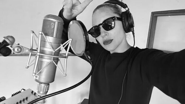 Aktorja 38-vjeçare e “A Star is Born”, e cila kohët e fundit ia kushtoi të dashurit të saj një nga shfaqjet e saj të fundit të qëndrimit në Las Vegas, shkoi në Instagram për të ndarë fotografitë e saj duke pozuar në studion e regjistrimit të enjten.