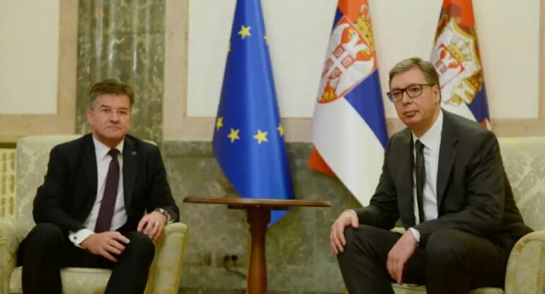Presidenti i Serbisë, Aleksandar Vuçiç, ka biseduar me të dërguarin e posaçëm të Bashkimit Evropian për dialogun Kosovë-Serbi, Mirosllav Lajçak, lidhur me mundësitë e vazhdimit të bisedimeve në Bruksel. Kështu njoftoi Vuçiç më 15 mars përmes një postimi në llogarinë e tij në Instagram. “Ne shqyrtuam të gjitha mundësitë dhe temat për vazhdimin e bisedimeve konstruktive në Bruksel, si dhe biseduam për hapat e nevojshëm për përparim drejt normalizimit të raporteve mes Beogradit dhe Prishtinë. Sërish i bëra thirrje komunitetit ndërkombëtar që të angazhohet konkretisht dhe në mënyrë të vendosur në çështjet me rëndësi themelore për mbijetesën e popullit serb në Kosovë dhe për stabilitetin rajonal”, tha Vuçiç.