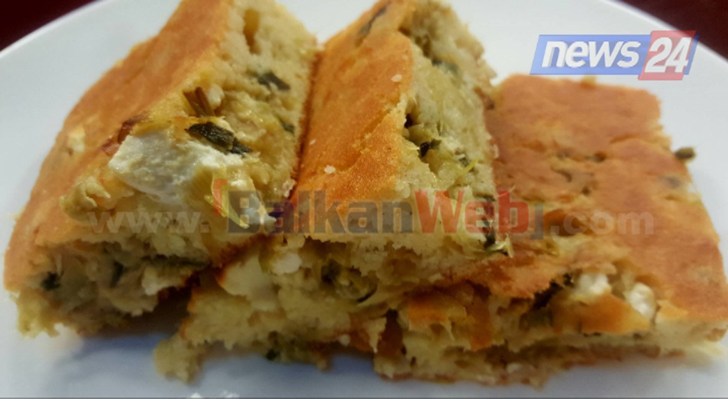 Lajmë mirë preshin, e presim në dysh horizontalisht dhe më pas e presim në trashësi 0.5 cm diagonal. Të njëjtën prerje bëjmë dhe për qepët e njoma. I vendosim qepët e njoma dhe preshin në një tigan me dy lugë vaj ulliri dhe i kaurdisim derisa të zbuten dhe të mos kenë lëng duke i trazuar herë pas here dhe duke patur kujdes që të mos marrin ngjyrë. Në fund shtojmë një tufë majdanoz, kripë, piper të zi, 1 kokërr vezë, 1 gotë qumësht dhe djath të bardhë të thërrmuar.