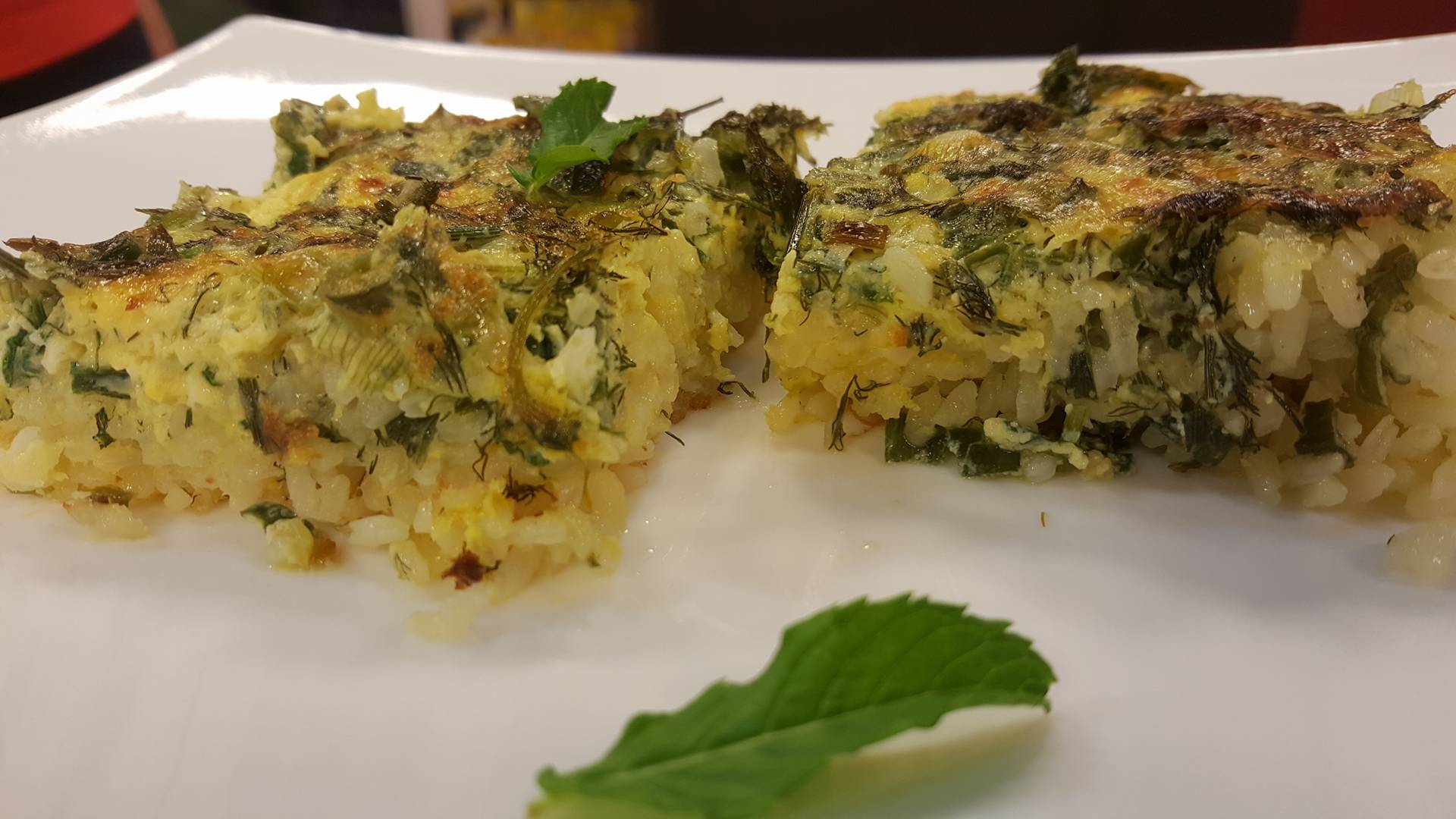 I rregullojmë me kripë dhe piper të zi dhe më pas shtojmë orizin. I trazojmë mirë të gjithë përbërësit dhe më pas hedhim gjysmën e sasisë së qumështit dhe ujit. E vendosim gatimin në furrën e parangrohur për 5 minuta, më pas e largojmë nga furra dhe shtojmë vezët e rrahura me pjesën tjetër të qumështit. E vendosim përsëri në furrë për 35-40 minuta në temperaturën 180-200 gradë Celsius.