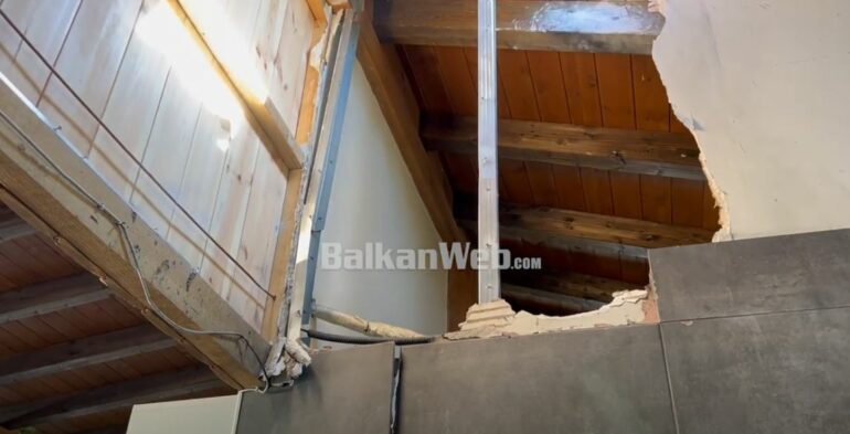 Pamjet që shihni tregojnë dëmet e shkaktuara nga shpërthimi me lëndë plasëse në një lokal në një fshat të Velipojës.