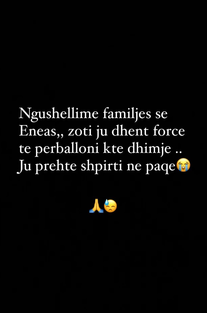 “Ngushëllime familjes së Eneas, Zoti ju dhëntë forcë të përballoni këtë dhimbje. Iu prehtë shpirti në paqe”, shkruan ajo.