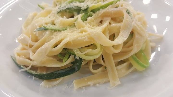 Fillimisht vendosim makaronat të ziejnë në ujë të vluar me kripë duke respektuar minutazhin e shkruar në etiketë. Paralel me zierjen e makaronave vendosim tiganin në zjarr me vaj dhe hudhrat të grira imët. Shtojmë kungujt të prera për së gjati në shirita të hollë. Shtojmë pak fare ujë dhe i lemë kungujt të ziejnë për 6 minuta. Në fund i rregullojmë me kripë dhe piper të zi.Trazojmë në një tas panën me pak borzilok të grirë dhe trumzë, e shtojmë tek kungujt dhe më pas e bashkojmë me makaronat, i përziejmë lehtë dhe i shërbejmë spërkatur me djath parmixhano.