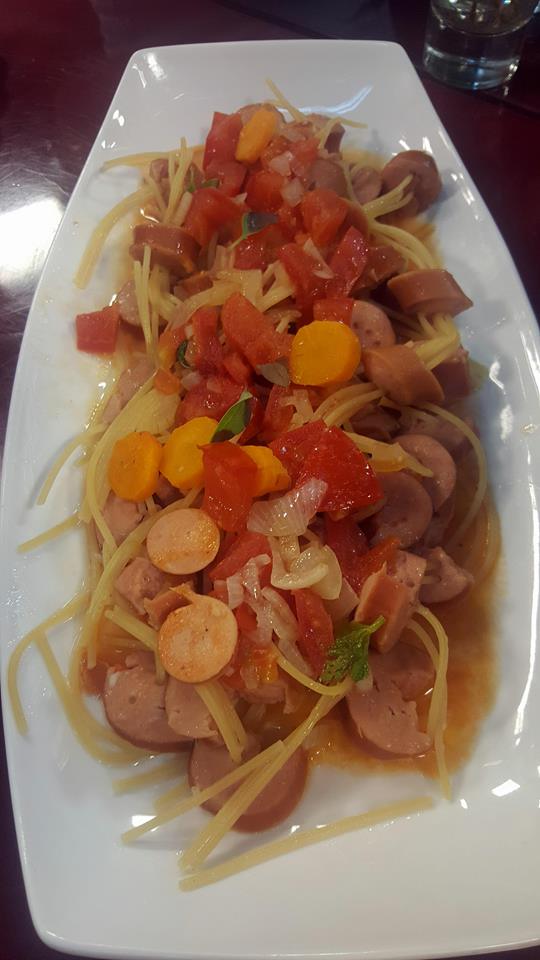 Fillimisht presim salçiçet në feta rrumbullake. Më pas bashkojmë 3-4 fije makarona dhe i kalojmë (si shkopinj shishqebapi) në tre feta salçiçe duke lenë hapësira nga njëra fetë salçiçe tek tjetra. I vendosim më pas makaronat me salçiçe të ziejnë në ujë të bollshëm me kripë sipas minutazhit të shkuar në paketim.