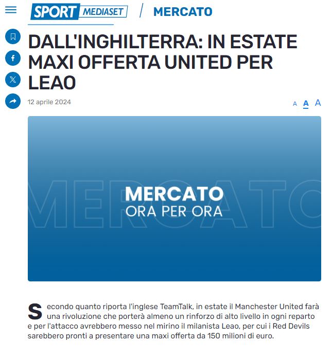 “Djajtë e kuq” po përgatiten për një revolucion në fund të këtij sezoni, ndryshime të theksuara në çdo repart, dhe sipas të medias angleze, Leao është një nga emrat e preferuar nga drejtuesit e klubit. United është gati të investojë deri në 150 milionë euro për të siguruar shërbimet e Leao-s, një shifër që mund të tundojë edhe drejtuesit e Milan.