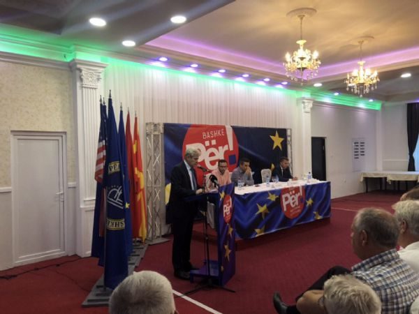 “Ne na ngelet për detyrë që të mobilizohemi të gjithë dhe suksesi të mos mungojë. Ne kërkojmë NATO, ne kërkojmë Bashkimin Evropian. Të kishim ngelë në duart të Rusisë ne do të ishim përtej Adriatikut. Prandaj vëllezër e motra ne as nuk do ishim në tokat tona, andaj dhe duam anëtarësim në aleancën politiko ushtarake të jemi anëtarë të denjë dhe të jemi anëtarë të Bashkimit Evropian se ashtu e zhvillojmë ekonominë ashtu do e parandalojmë edhe shpërnguljen e njerëzve që kanë shkuar për një jetë më të mirë dhe kështu krijojmë kushte t’i kthejmë. Të mos hezitojmë se të mirat do vinë, nga ne pritet vullnet i fortë dhe i mirë të punojmë pasi vitin e ardhshëm do të anëtarësohemi në NATO dhe ju sigurojë se ne do të jemi në këtë aleancë. Me 30 shtator votohet për Maqedoninë, për të ardhmen e këtij vendi”, u shpreh kryetari i BDI-së.