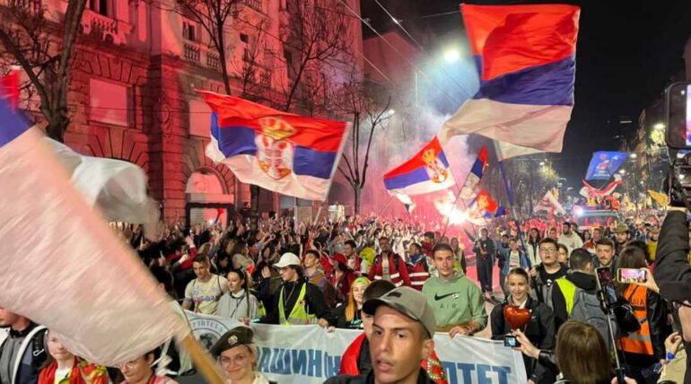 Ministria e Brendshme e Serbisë, ka bërë të ditur se dy persona janë arrestuar për prishje të rendit publik gjatë tubimit të mijëra njerëzve për t’i mirëpritur studentët në Beograd në mbrëmjen e së premtes.