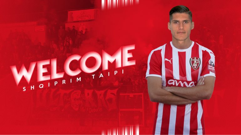 “Shqiprim Taipi prej sot është zyrtarisht futbollist i Skënderbeut. 21-vjeçari së bashku me presidentin Ardjan Takaj kanë firmosur sot kontratën, që e lidh për 2 vite e gjysëm me klubin bardhekuq. Shqiprim Taipi luan në qendër të mesfushës dhe pritet të shtojë konkurrencën në këtë repart. Ai do të jetë një forcë më shumë për trajnerin Orges Shehi për 2 fazat e mbetura”, – shkruhet në faqen e klubit korçar. (o.k/BalkanWeb)