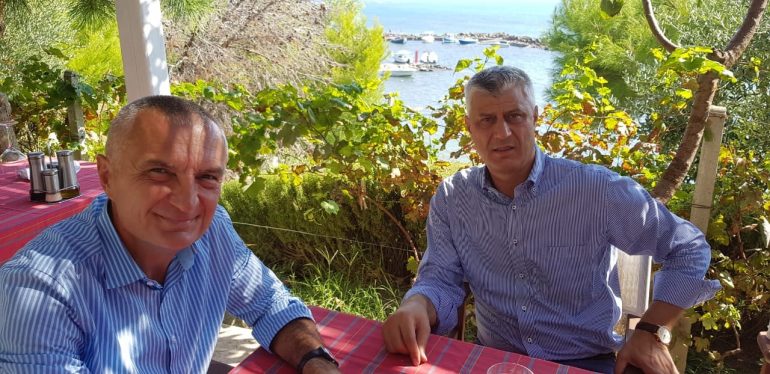 DURRËS- Në kulmin e debateve për çështjen e kufijve dhe pas vizitës së Presidentit serb në Kosovë, Presidenti i Republikës Ilir Meta është takuar sot në Durrës me Presidentin e Kosovës Hashim Thaçi për një drekë punë, siç e përshkruan Kreu i Shtetit.