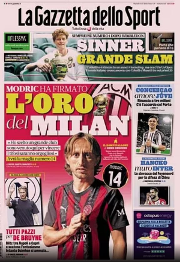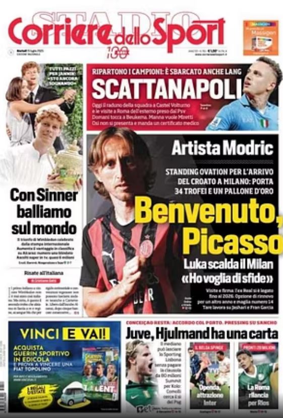 Transferimi i tij në Serie A “pushtoi” faqet e para të mediave italiane: “Modric firmosi. Është i arti i Milan”, shkruan La Gazzetta dello Sport në faqen e parë. “Mirëserdhe Picasso”, ishte titulli i përzgjedhur nga Corriere dello Sport.