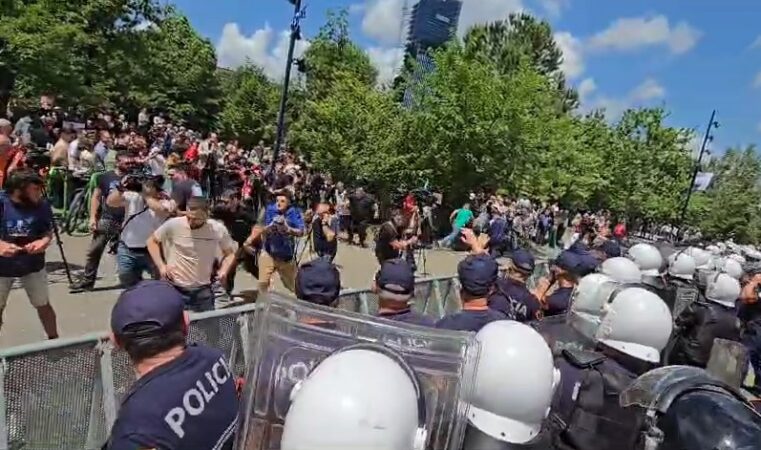 Protesta e opozitës para Bashkisë së Tiranës, e nënta radhazi, u shoqërua me momente tensioni. Mbështetësit e Rithemelimit hodhën bomba molotov drejt godinës së Bashkisë. Një prej shisheve molotov goditi fillimisht një shtyllë dhe u kthye duke rënë te gazetarët dhe operatorët që po mbulonin protestën.