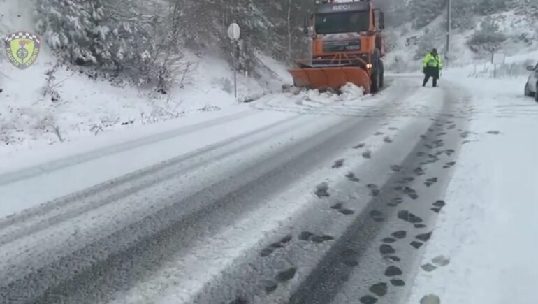 Policia e Shtetit me anë të një lajmërimi shprehet se për shkak të motit të keq me shi dhe me borë në disa zona malore, ka rritur prezencën e saj nëpër rrugë.