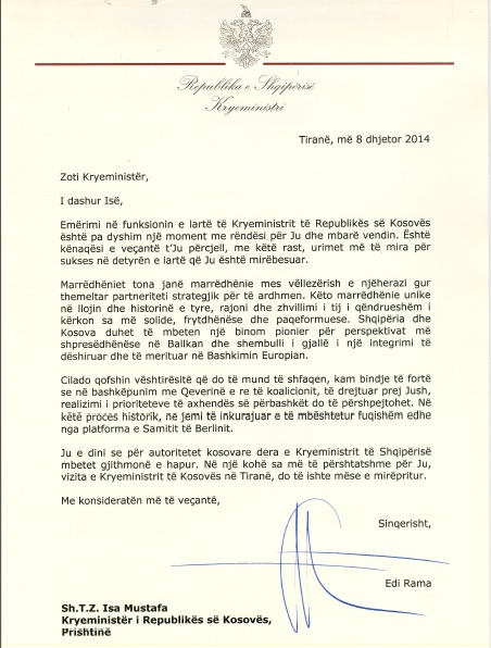 Në një postim në rrjetin social Facebook, Mustafa thekson se “sot në mëngjes përfunduam një marrëveshje shumë të rëndësishme, e cila siguron funksionimin e gjyqësisë në gjithë territorin e Kosovës. Falenderoj përfaqësuesen e lartë të BE-së, Federica Mogerini dhe anëtarët e delegacionit, zv kryeministrin Hashim Thaçi, Ministrin e Drejtësisë, Hajredin Kuci, Ministren Edita Tahiri, Ministrin e integrimeve Evropiane, Bekim Collaku, Blerim Shala dhe Valon Halimi, këshilltarin tim për çështje të emigracionit dhe migrimit. Falenderoj edhe ekipet profesionale që punuan gjatë dhe me përkushtim për këtë fushë të rëndësishme”.