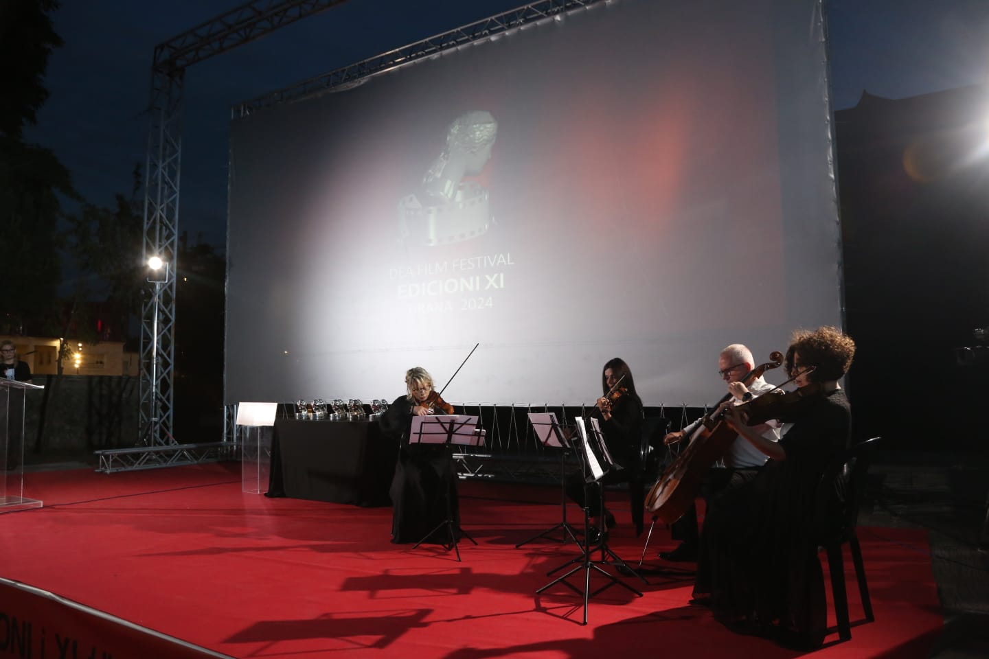 Me falenderimin për mbështetjen dhe kthimin sërish vitin e ardhshëm Mirela Oktrova Drejtoresha artistike e DEA OPEN AIR e deklaroi të mbyllur mbrëmjen Gala të ndarjes së Çmimeve të Dea – International Film Festival – Tiranë 2024. Kuarteti i harqeve luajti një prej perlave të muzikës popullore shqiptare, “Bareshën”, ndërsa në skenë u ngjitën të gjithë pjesëmarrësit për foton tradicionale përmbyllëse.