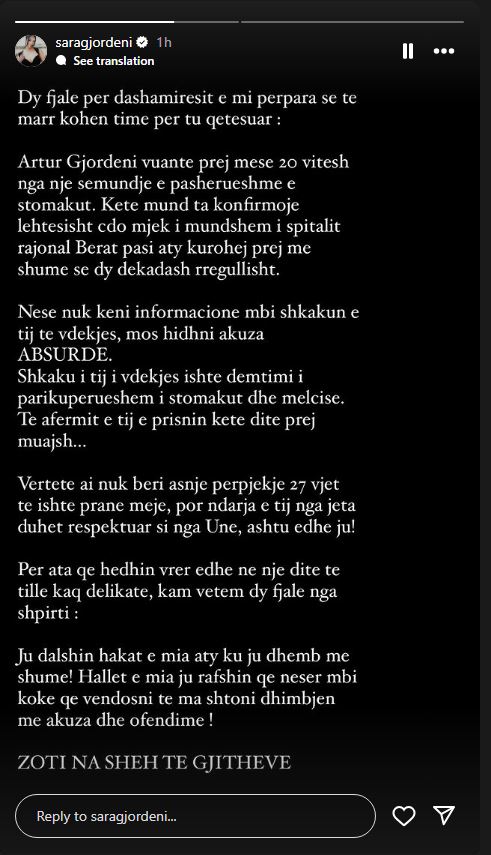 Më pas ka qenë vetë Sara që ka reaguar me anë të një postimi në rrjetet sociale ku tregon dhe për tentativën e fundit për të folur me të.