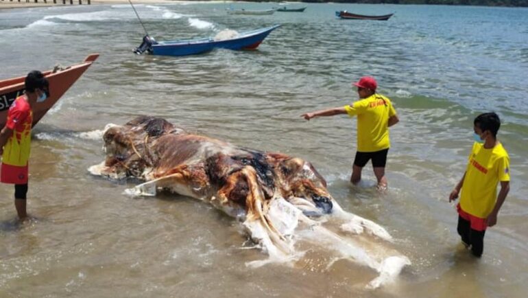 Trupi i dekompozuar i një bishe të paidentifikuar u gjet në një plazh në Malajzi në vitin 2024 dhe i ka lënë shkencëtarët të habitur.