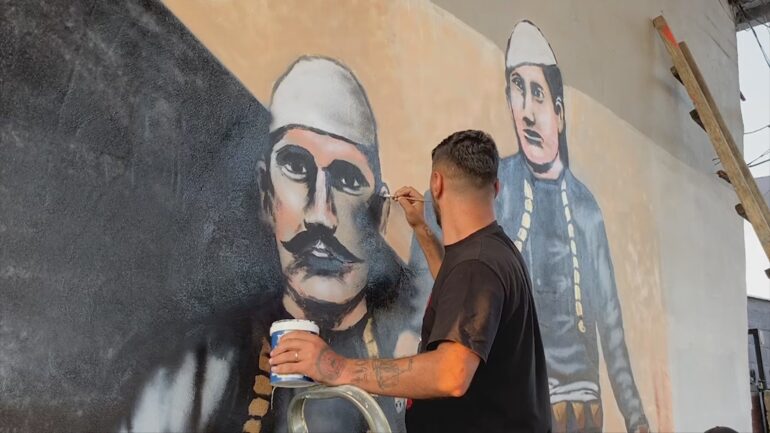 Autori i pikturave murale është 30-vjeçari Bledar Çakalli, i cili shprehet se realizmi i tyre lidhet me detyrën dhe përgjegjësinë morale që ndjen si qytetar i këtij vendi, ndaj përmes tyre synon të ngjallë te kalimtarët historinë e lavdishme të popullit shqiptar. 30-vjeçari, në këtë iniciativë është mbështetur edhe nga të rinj të tjerë, që jetojnë në Shqipëri, por edhe në vise të tjera shqiptare të mbetura jashtë kufijve politikë. I riu shprehet se për realizmin e plotë të pikturave iu është dashur rreth 7 ditë.