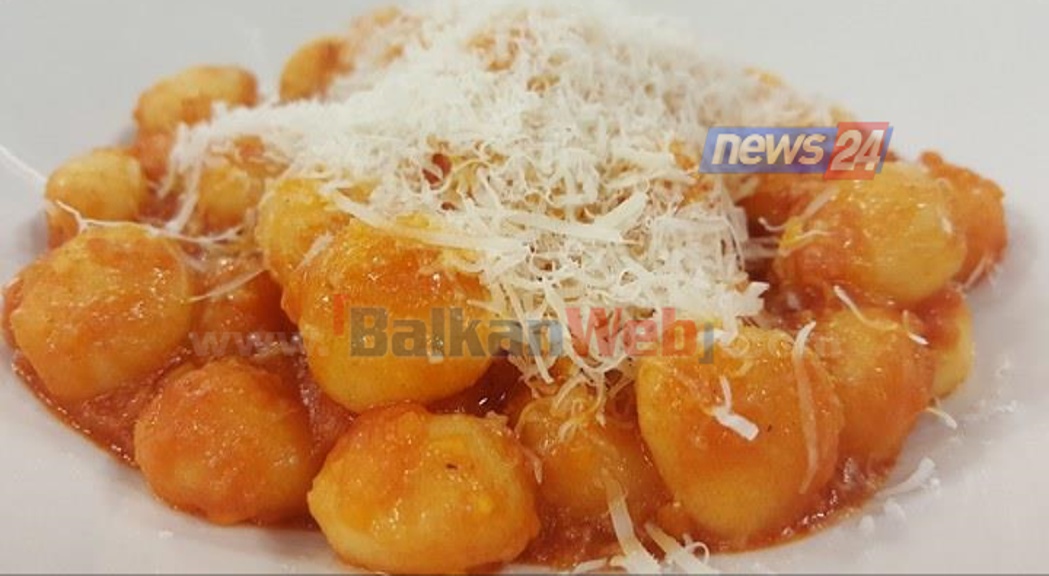 Ndërkohë në një tenxhere me ujë të vluar shtojmë pak kripë dhe vendosim njokit të ziejnë derisa të dalin në sipërfaqe të ujit. I largojmë meë pas me një sitë dhe i vendosim në tiganin me salcë. I përziejmë mirë dhe i servirim duke i spërkatur me djath parmixhano.