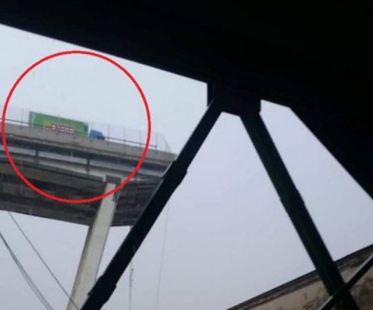 Një kamion ka ndaluar vetëm pak metra larg pjesës së shkëputur të urës Morandi në Genova. Shoferi që ndodhej brenda mund ta konsiderojë veten të lindur me këmishë.