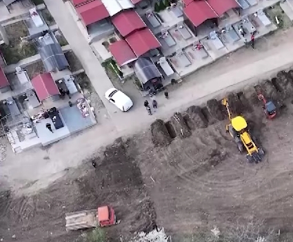 Reuters publikoi një video të ekskavatorëve duke gërmuar varret.
