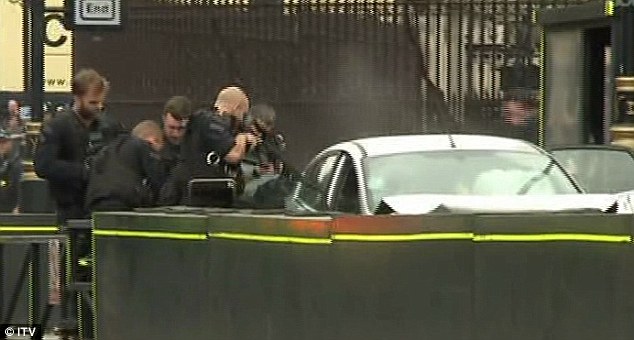 Rreth një duzinë oficerësh të armatosur u sulën drejt automjetit dhe i kthyen armët burrit me xhaketë të zezë, i cili u tërhoq nga makina.