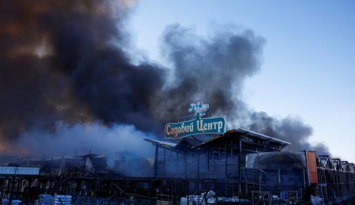 Sulmi shkaktoi një zjarr masiv në qendrën tregtare “Epicentr DIY” duke e bërë të vështirë për ekipet e shpëtimit identifikimin e shumicës së trupave të djegur.