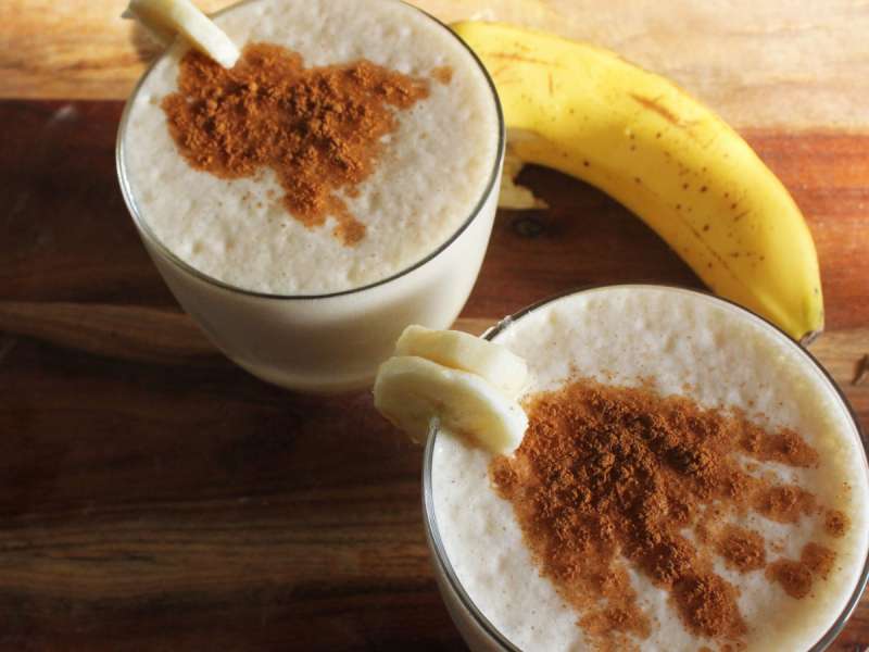 Hiqni skajet e bananes dhe vendosini në ujë. Lëreni ujin derisa të vlojë për 10 minuta. Pastaj, nëpërmjet kullesës hidheni në një gotë të madhe.