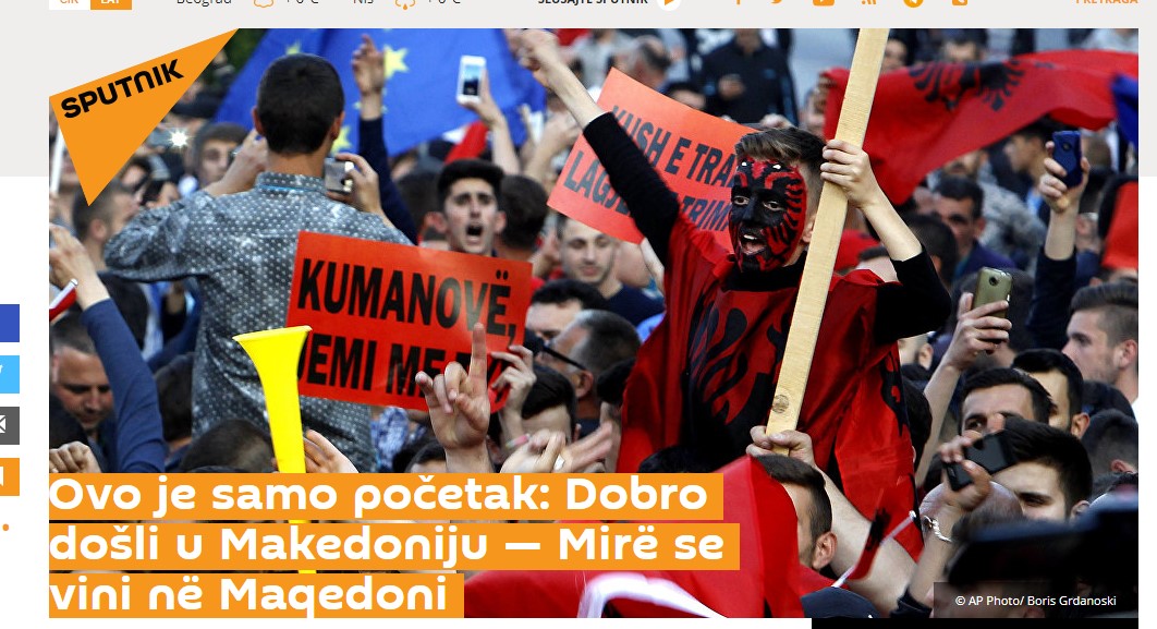 Kështu shkruan portali shtetëror rus “Sputnik” i cili transmeton lajme për Ballkanin nga zyra në Beograd dhe atë në gjuhën serbe.“Ovo je samo početak: Dobro došli u Makedoniju — Mirë se vini në Maqedoni”, është titulli i këtij tekstit, duke bërë kështu që për herë të parë një media shtetërore ruse “të flas edhe shqip”,