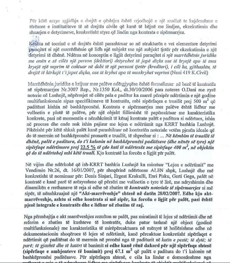 Në shkelje të kësaj akt marrëveshjeje, pronarëve të truallit ju mohua e drejta e pronësisë për sipërfaqen prej 67.1 m2.