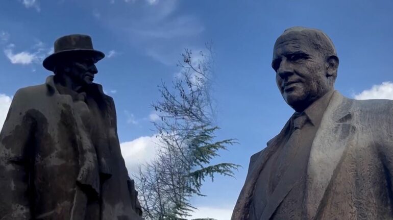 Shtatoret e Lasgush Poradecit dhe Mitrush Kutelit janë ngritur në “Sheshin e trëndafilave” përballë Liqenit të Ohrit dhe Malit të Thatë dhe janë punuar nga skulptori Mumtaz Dhrami.