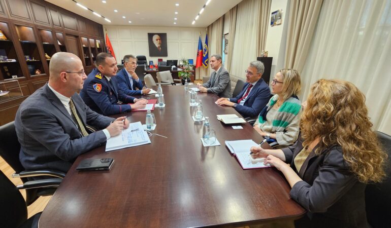 Drejtori i Përgjithshëm i Policisë së Shtetit, Drejtues Madhor Ilir Proda, priti sot në një takim znj. Francesca Varlese, Menaxhere e Programit në Delegacionin e Bashkimit Europian në Tiranë, z. Giovanni Pasqua, Koordinator Ndërkombëtar i projektit EU4LEA, si dhe z. Thierry Vignes, Ekspert i Përhershëm Ndërkombëtar për Format Evolutive të Krimit të Organizuar dhe Policinë Shkencore, i emëruar nga CIVIPOL.