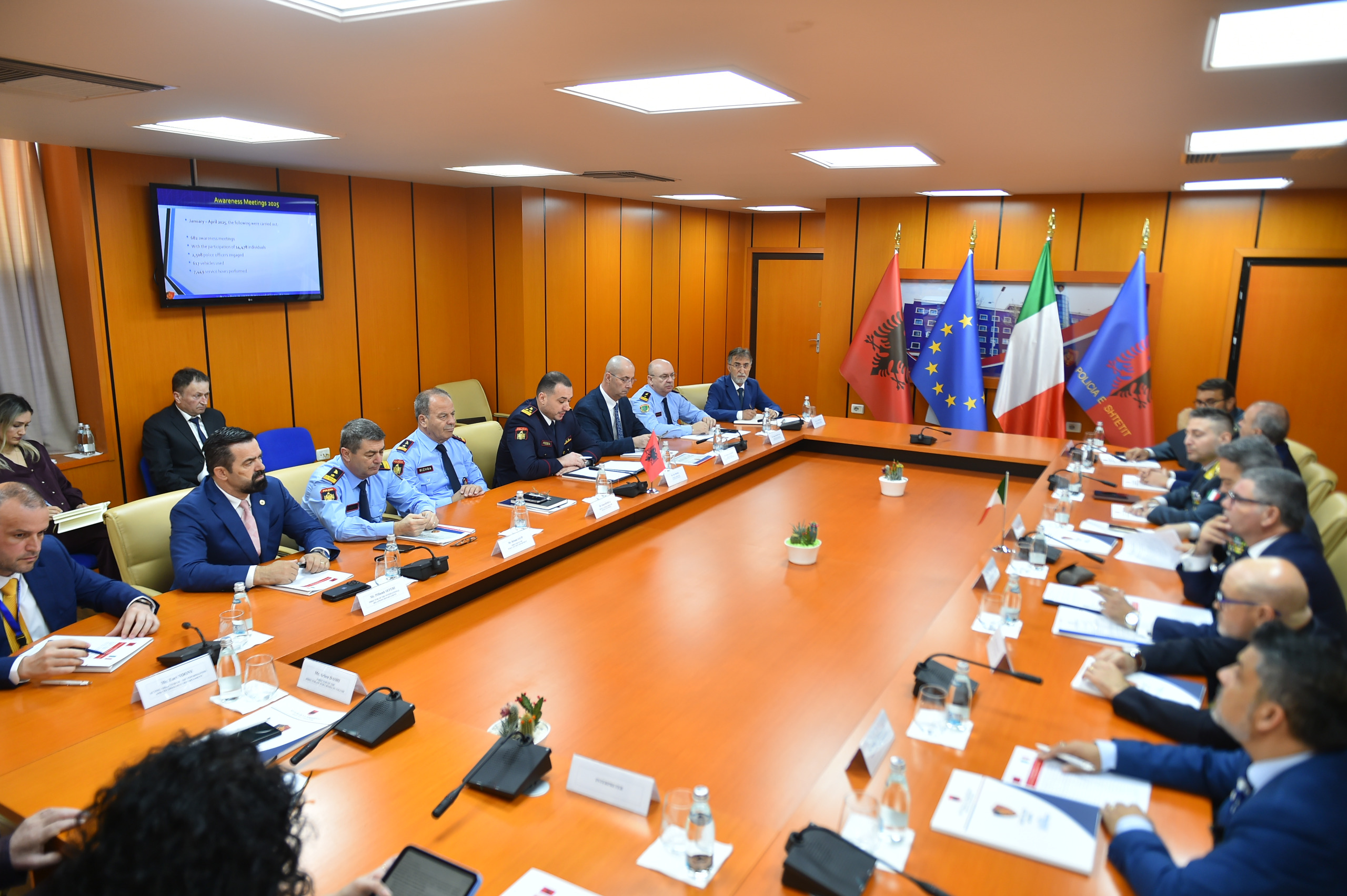 Drejtori i Përgjithshëm i Policisë së Shtetit, Ilir Proda, zhvilloi sot një takim me një Delegacion të Lartë të Ministrisë së Brendshme të Italisë, që kryesohej nga Komandanti i Repartit të Tretë të Operacioneve të Komandës së Përgjithshme të Guardia di Finanza, Gjeneral Brigade Luigi Vinciguerra, Drejtori i Shërbimit për Bashkëpunimin Ndërkombëtar të Policisë, Gjeneral Brigade Giampiero Ianni, Eksperti i Sigurisë pranë Ambasadës Italiane në Tiranë, Salvatore Gava, përfaqësuesi i Zyrës Ndërlidhëse Interforze në Shqipëri, Ferdinando Rucco, Komandanti i Guardia di Finanza në Durrës, Nënkolonel Francesco Della Corte, Eksperti i Guardia di Finanza, Nënkolonel Giampiero Carrieri dhe përfaqësues të Konsorciumit Universitar Benecon.