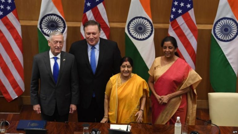 Sekretari amerikan i Shtetit, Mike Pompeo dhe Sekretari amerikan i Mbrojtjes, Jim Mattis kanë zhvilluar takime me homologet e tyre në Indi, një ditë pasi Pompeo ka vizituar rivalin rajonal të këtij vendi, Pakistanin.
