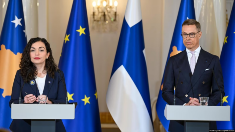 Presidentja e Kosovës, Vjosa Osmani, e cila po qëndron për vizitë zyrtare në Finlandë, theksoi rëndësinë që çdo marrëveshje e ardhshme paqeje mes Ukrainës dhe Rusisë të mos e inkurajojë Moskën që të “ndjekë më tej ambiciet e saj imperialiste dhe territoriale ndaj vendeve të tjera”.