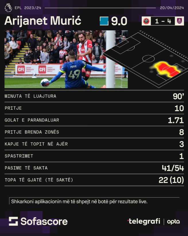 SofaScore e ka zgjedhur Muriçin si më të mirin e ndeshje, duke e vlerësuar me 9.0. Muriç realizoi 10 pritje, prej tyre tetë goditje që erdhën brenda zonës.