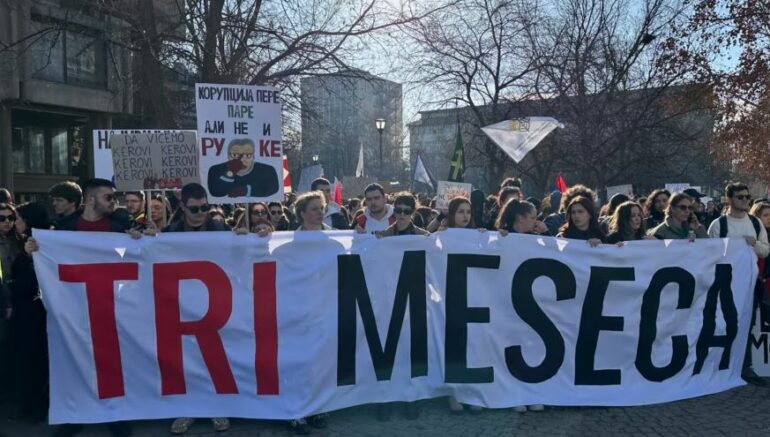 Protesta organizohet në tremujorin e tragjedisë në Novi Sad, e cila ka nxitur një valë të madhe protestash, në të cilat kanë marrë pjesë mijëra persona.
